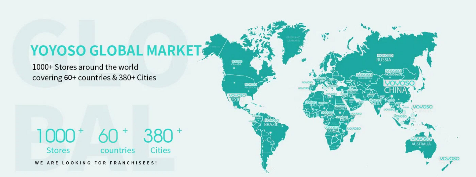 At present, there are over 1000 YOYOSO stores in the world, spreading all over China, USA, Russia, UAE, Bangladesh, Colombia, Canada, Kuwait, Nepal, Turkey, Lebanon, Germany, Austria, Czech, Greece, France etc.